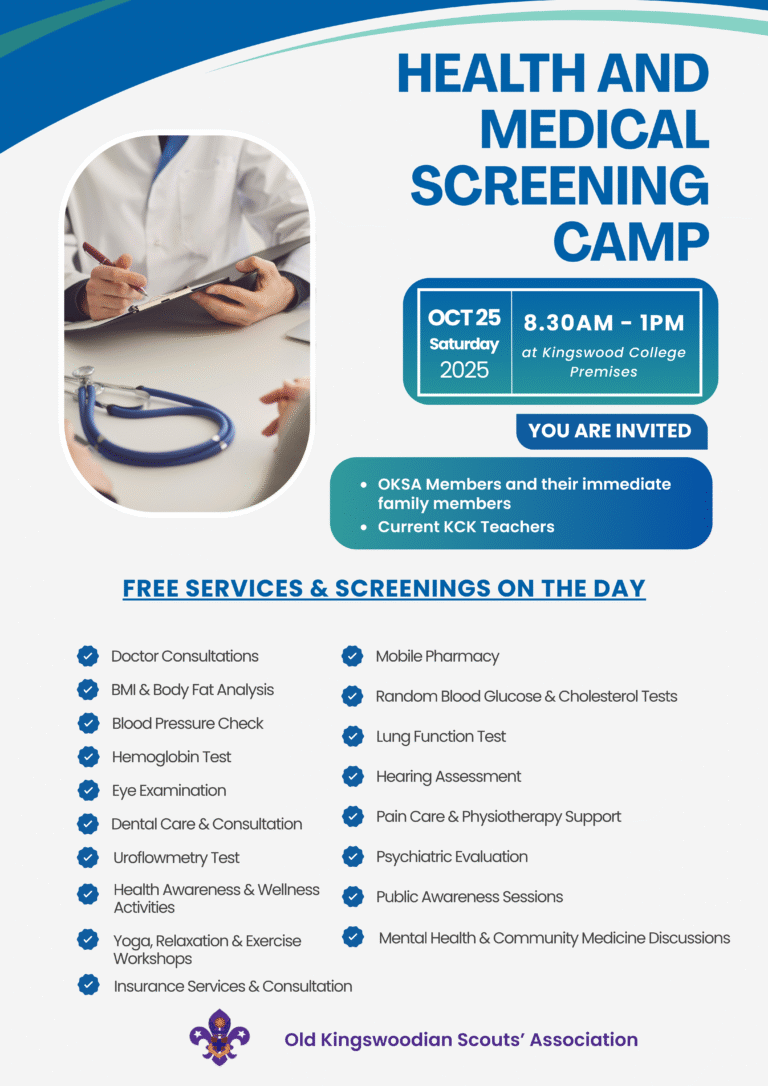 The Kingswood Old Scouts Association proudly hosted the Health & Medical Screening Camp 2025 on 25th October 2025, organized to promote the health and wellbeing of our members and their extended families and Kingswood Staff.